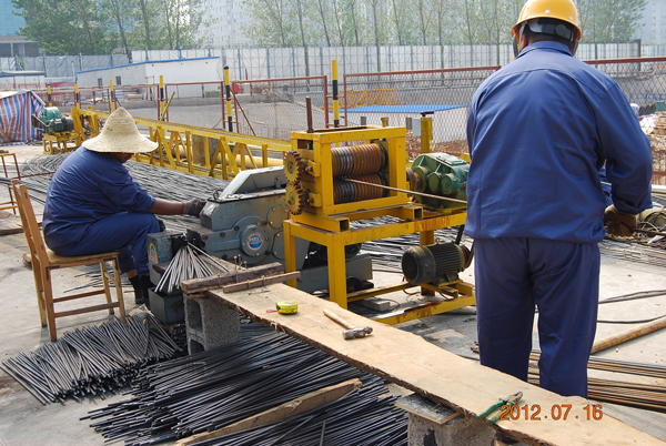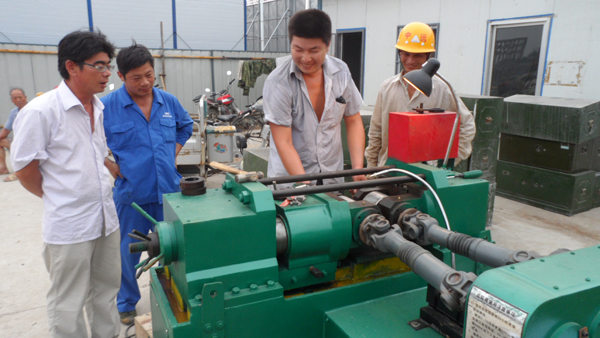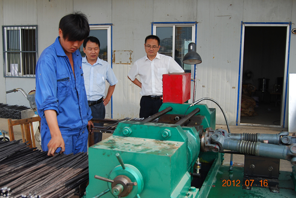 近日,中遠公司投資5萬余元購置了穿墻絲桿生產(chǎn)線設備一套,包括拔絲機、滾絲機、縮經(jīng)機、切斷機,試運營一個星期,效果良好。 據(jù)了解,該設備主要用于加工6—40絲桿、絲杠。其工藝流程首先是把12圓鋼用縮徑機縮小到一定程度,然后用拔絲機把12圓鋼拉拔到10.6cm,再用切斷機把已拉長的圓鋼切斷所需長度,用滾絲機把鋼筋兩頭滾絲。據(jù)該公司設備科負責人介紹,該滾絲機每天大約可滾4000多個絲桿,滿足公司直營工程項目使用,并可對外加工。所做絲桿質(zhì)量高于市場銷售質(zhì)量。該設備易于操作,能夠提高人員使用率,并大大降低工程成本,減少公司資金壓力。